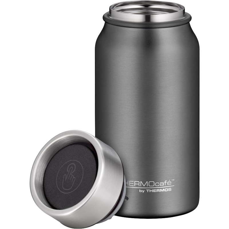 Nerezový vakuově izolovaný hrnek s tlačítkovým uzávěrem. Lehký a kompaktní termohrnek padne do většiny automobilových držáků. Termohrnek je vodotěsný v uzavřeném stavu. Jedním zmáčknutím na tlačítko se uzávěr spolehlivě otevře a zavře. Pít nápoj z uzávěru je možné po celém obvodu uzávěru - není nutné hledat otvor pro nápoj. Odnímatelný uzávěr lze hygienicky čistit i v myčce na nádobí. Termohrnek je určen jak pro studené tak teplé či horké nápoje.