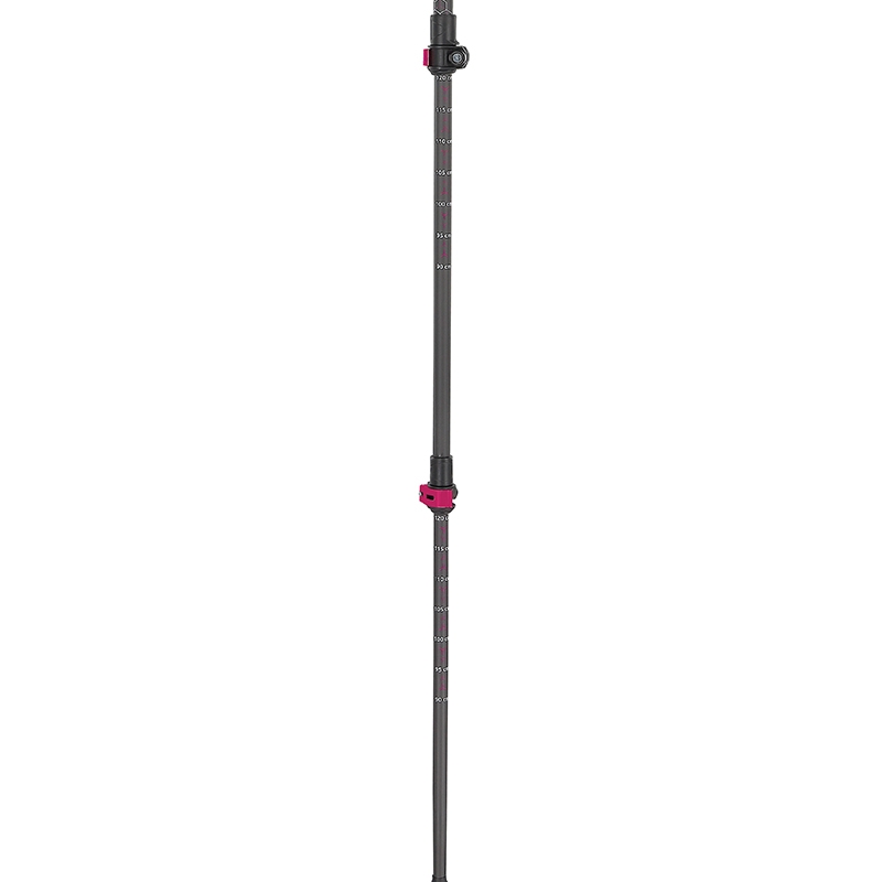 Vrchní díl je lehčí, madlo je z měkčí speciálně tvarované pěny pro anatomii dámské dlaně. To zaručuje maximální pohodlí i při delším výletu. Na spodním díle je přehledná stupnice pro pohodlné a přesné nastavení délky hole.