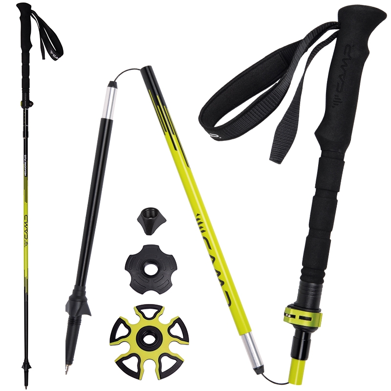 Skládací hole C.A.M.P. Megasonic Plus jsou navrženy s širším průměrem segmentů, což zajišťuje vyšší odolnost a tuhost při náročných túrách a trekingu. Konstrukce z hliníkové slitiny se skládá z pěti segmentů, propojených 1,5mm ocelovým lankem s polyamidovým opletem, umožňujícím snadné nastavení tuhosti hole.
