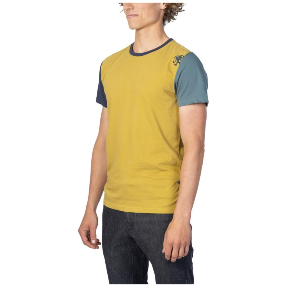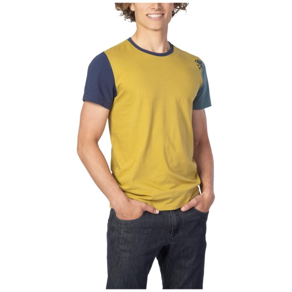 Pánské tričko z organické bavlny s barevnými rukávy navržené pro lezení i volný čas.