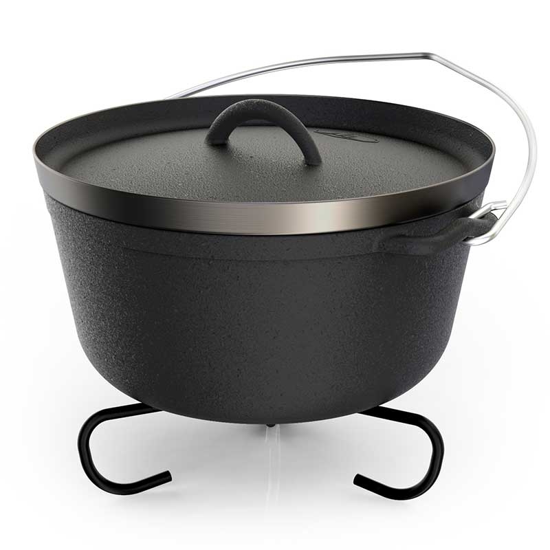 Guidecast Dutch Oven nabízí výborný rozvod tepla a navíc je o 30% lehčí než konvenční litiny. Nitridovaný povrch trouby zajišťuje stálou odolnost proti korozi. Mezi další výhody patří leštěné dno, které umožňuje vaření na sporáku, ohni, v troubě i na indukční desce. Dále pak pohodlné rukojeti pro snadnou manipulaci či zavěšení vašich kuchařských nástrojů. Holandskou troubu je při použití v ohni možné zapustit do žhavých uhlíků nebo jí použít jako zavěšený kotlík nad oheň. Holandskou troubu GSI Outdoors Guidecast Dutch Oven omyjete jednoduše za použití ručního mytí teplou vodou a solí. Před dalším použitím nechte důkladně zaschnout.