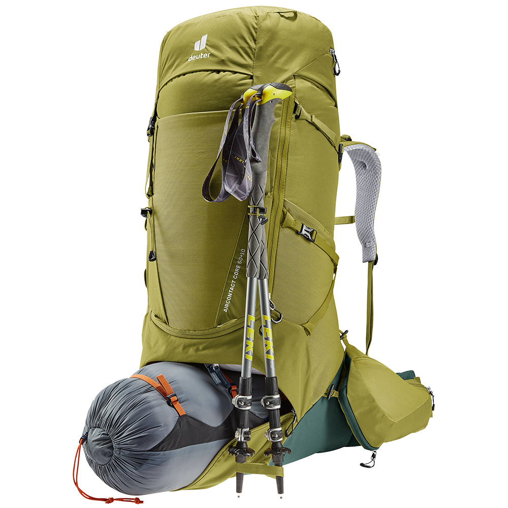 Batoh Aircontact Core 60 + 10 značky deuter určený primárně pro trekking, je víceúčelový a pohodlný společník na delší cesty.