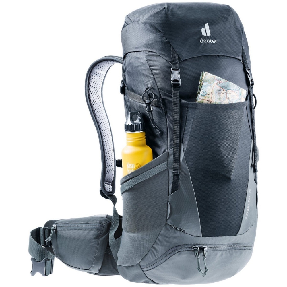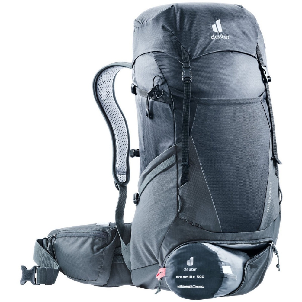 Futura Pro, promyšlený do všech detailů, byl vyvinut pro vícedenní túry, kde nesmí chybět pohodlí. Turistický batoh má proto ergonomický síťovaný zádový systém Aircomfort Sensic Pro. To zajišťuje maximální odvětrání zad díky inovativní síťovině. Pohyblivý bederní pás VariFlex ECL s ergonomickými polstrovanými vložkami navíc umožňují energeticky úsporné nošení. Díky přehlednému rozdělení oddílů lze věci snadno a efektivně ukládat v přihrádce na víko, v bočních kapsách, v oddělené spodní přihrádce a v prostorné hlavní přihrádce.