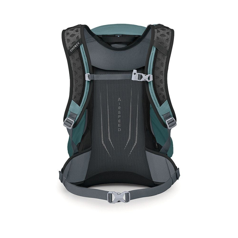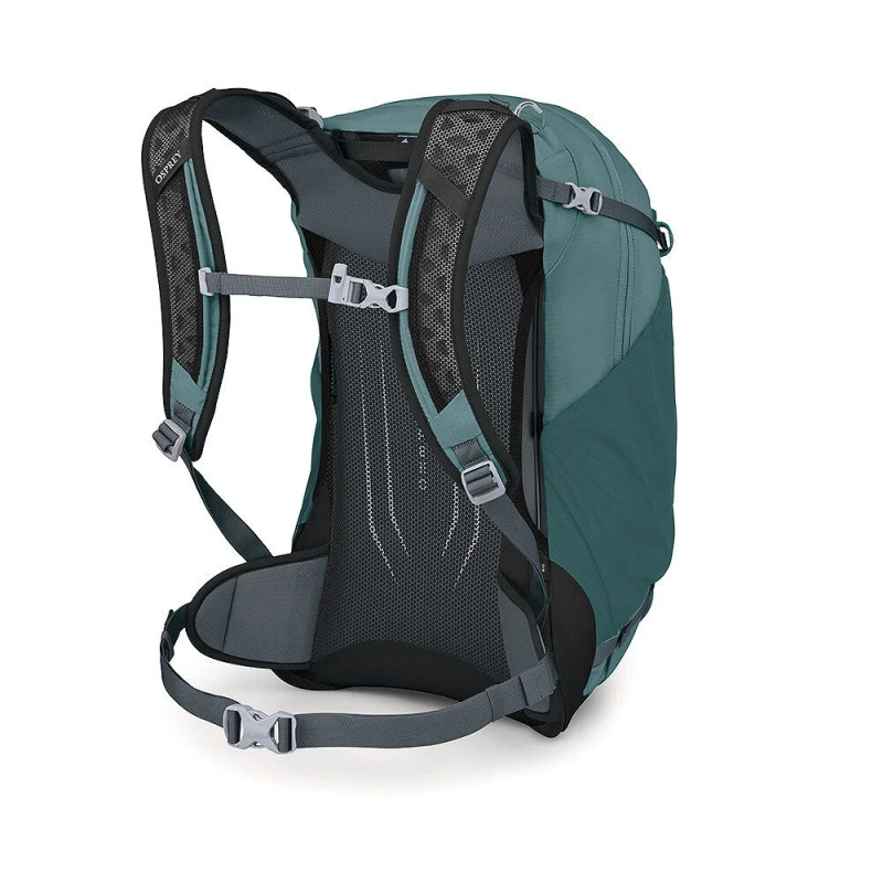 Dva postranní kompresní popruhy v horní části s fixací trekových holí a spodní kompresní popruhy pro dodatečnou regulaci zatížení. Dvě poutka na trekové hole. Vnitřní kapsa na hydrovak s výstupem na picí hadičku v zádovém panelu a klipem Osprey Hydraclip pro snadné zavěšení hydrovaku.
