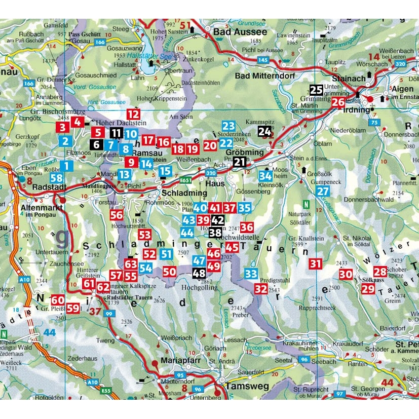 Naproti ní leží Schladminger Tauern s průzračnými horskými jezery a hučícími vodopády. Je to svět kontrastů! Kdo někdy zažil krásu tohoto horského světa, bude ohromen. Turistický průvodce Rother »Dachstein-Tauern Ost« představuje 63 vybraných túr – od příjemných túr do údolí a na chaty až po náročnější vysokohorské trasy. Vrcholem je vícedenní přechod Schladmingských Taur.