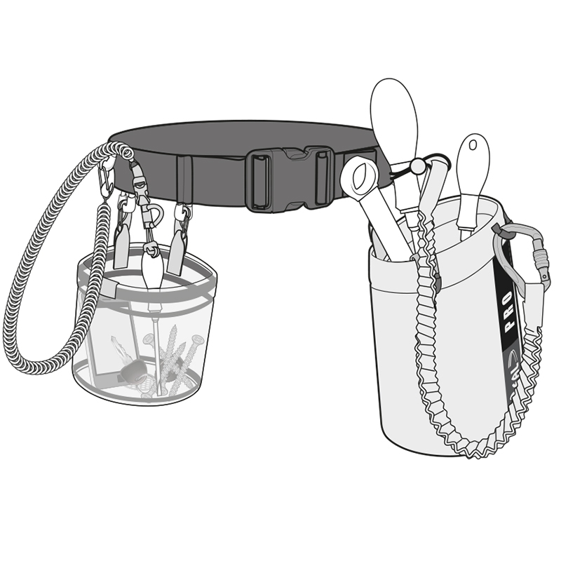 - 2 malé karabiny pro připevnění na pracovní sedačku nebo pracovní postroj