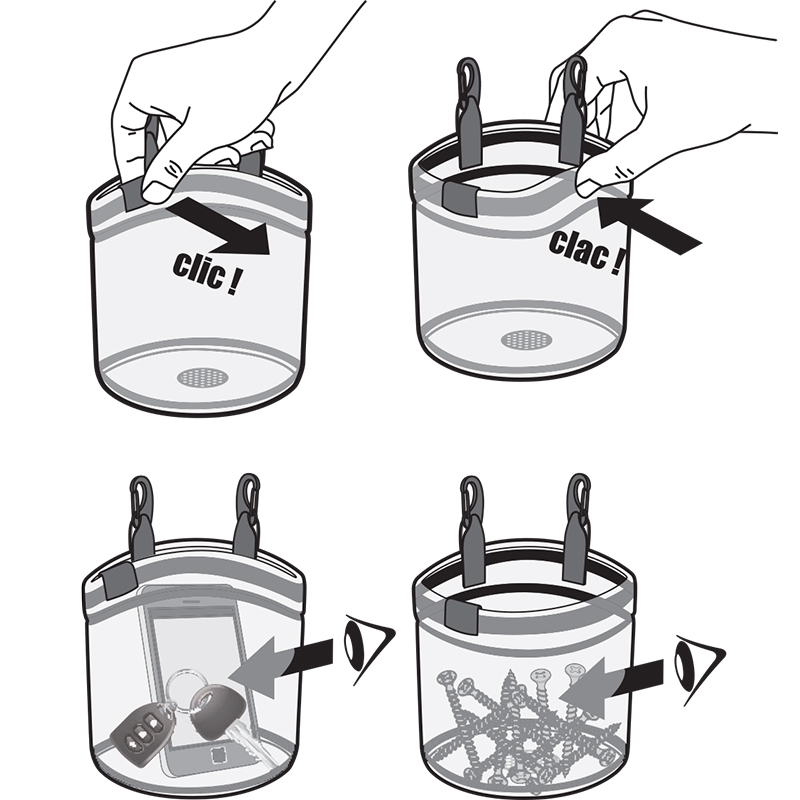 Pracovní transparentní kapsa s clic-clac uzavíráním pro drobný spojovací materiál.