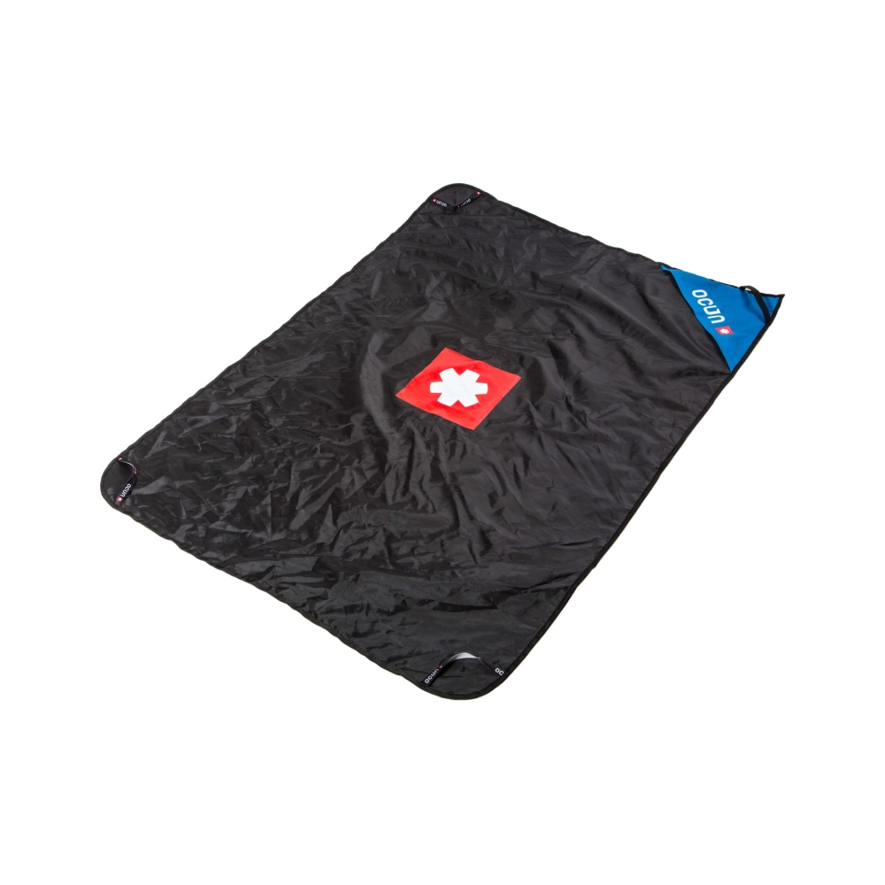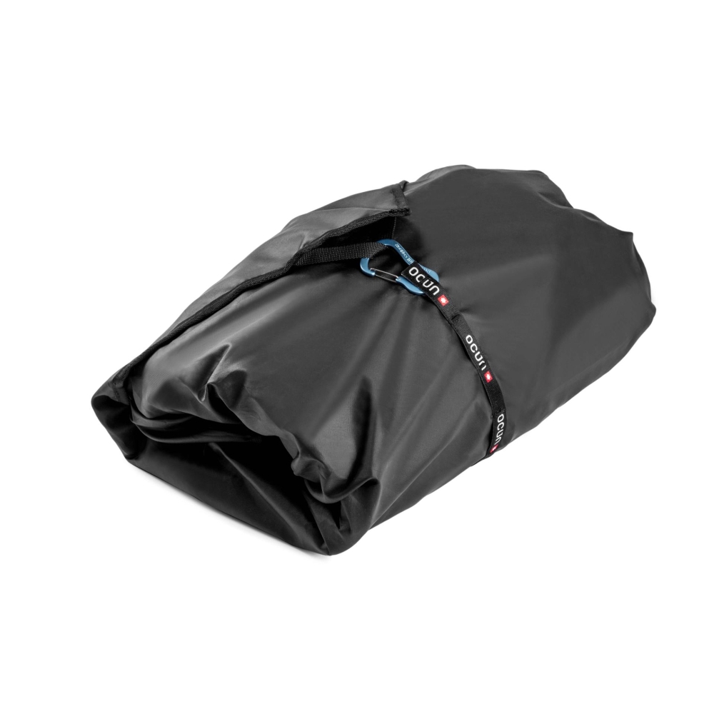 Snadné sbalení pomocí dodané karabiny. Malá při transportu, velká při použití. 4 rohová oka na konce lana. Rohová oka pro snadný přenos pod skálou.