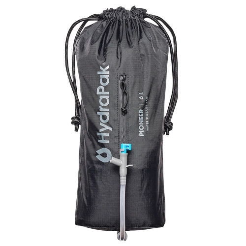 Vak na vodu Pioneer 6 od značky Hydrapak využijete při kempování nebo vícedenním treku. Jeho součástí je odolný nylonový obal s kapsou pro uschování vodního filtru nebo jiného příslušenství. Díky obalu můžete celý vak zavěsit a usnadnit si výdej vody. Součástí je také výdejní kohout, kterým rychle naplníte lahve, umyjete si ruce nebo nádobí pod "tekoucí " vodou.