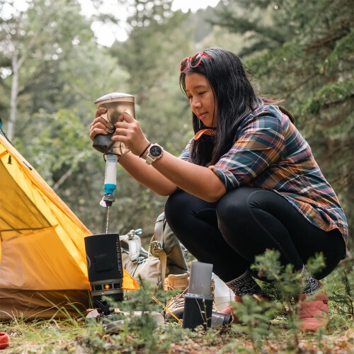 Použití je snadné: filtr jednoduše našroubujete na hrdlo lahve nebo vaku a můžete vodu rovnou pít, nebo ji přelít do jiné nádoby.