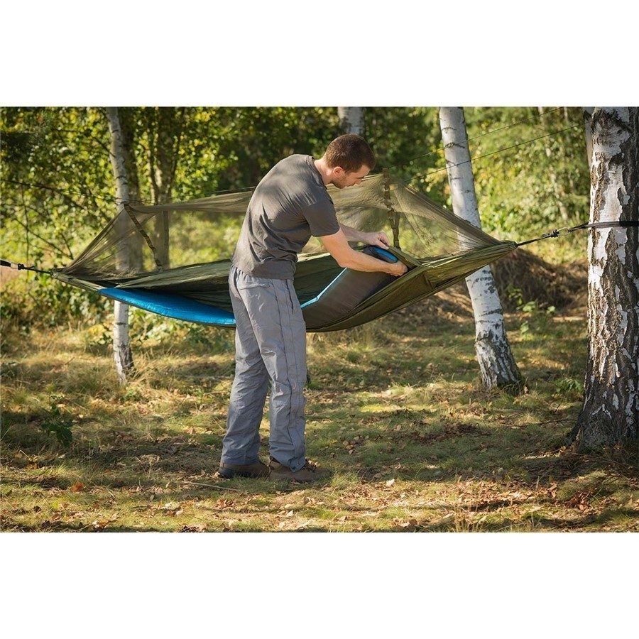 Hamaka je vybavena speciální kapsou na vložení karimatky pro zvýšení tepelného komfortu. Snadné rozložení. Dodáváno včetně karabin a provazů. Stříšku (tropiko) je možné natáhnout nad hamaku buď jako stan A, nebo přes úhlopříčku, takže vytvoří kosočtverec. Obě varianty vás dostatečně ochrání před případným deštěm. Odolnost proti vodě (vodní sloupec): 2000 mm H2O Síťka proti hmyzu je důležitá hlavně na jaře a v létě, kdy protivní komáři dokážou otravovat celo noc. Vás ale rušit nebudou. Hamaka má dvojité dno, které vytváří kapsu na karimatku. Karimatka je díky tomu uzavřena na jednom místě a neposouvá se, když zalézáte do spacáku a uléháte do hamaky.
