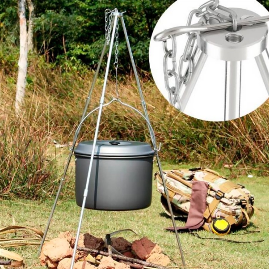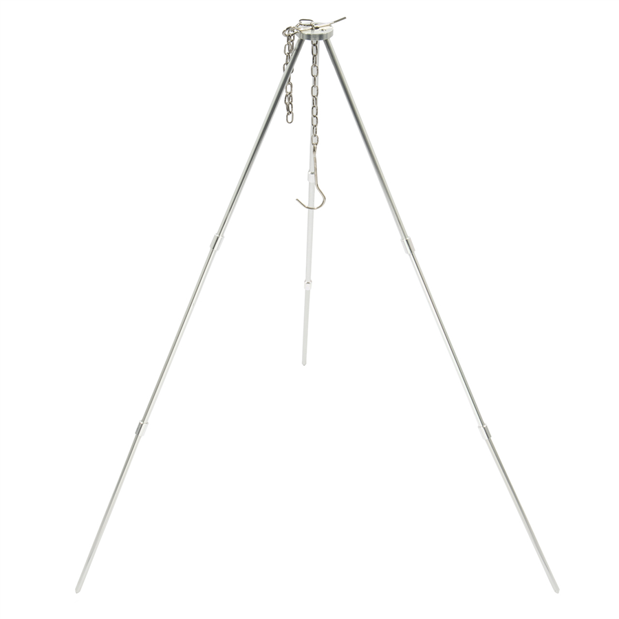 Skládací trojnožka s řetízkem a háčkem na zavěšení kotlíku. Nastavitelná výška zavěšení. Délka řetězu: 50 cm. Ideální pomocník při vaření v kotlíku na ohništi.